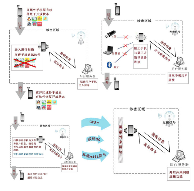 針對區(qū)域內(nèi)部人員存在著通過手機(jī)的通話、拍照、錄音、攝像等功能將涉密信息外泄的問題。保密部門雖然有相應(yīng)的管理制度要求,但是效力卻不大,制度管理只是在表面上約束了人員不準(zhǔn)其攜帶手機(jī)進(jìn)入涉密區(qū)域,但是實(shí)質(zhì)上卻沒有發(fā)揮任何管理作用,在沒有管理者發(fā)現(xiàn)的情況下,可能出現(xiàn)工作人員私下攜帶和使用手機(jī),從而造成重大的信息安全隱患。這樣時效率性低下,浪費(fèi)了人力,約束力也不強(qiáng)。